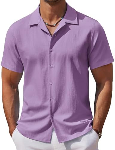 COOFANDY Men’s Casual Button Down Shirts Short Sleeve Wrinkle-Free Summer Beach Wear