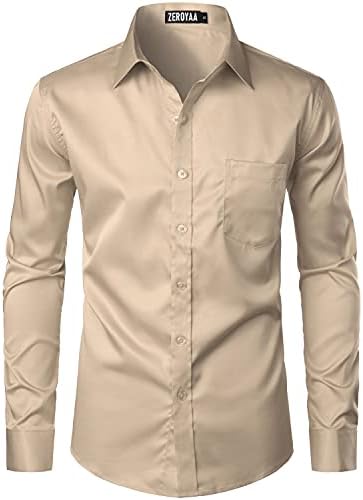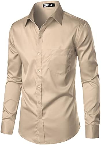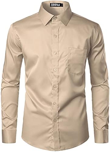 ZEROYAA Men’s Urban Stylish Casual Business Slim Fit Long Sleeve Button Up Dress Shirt with Pocket